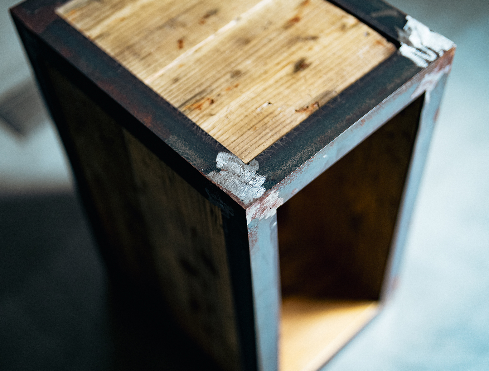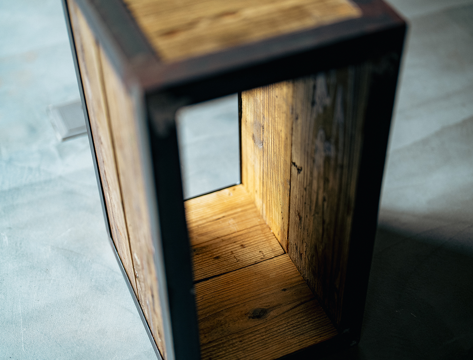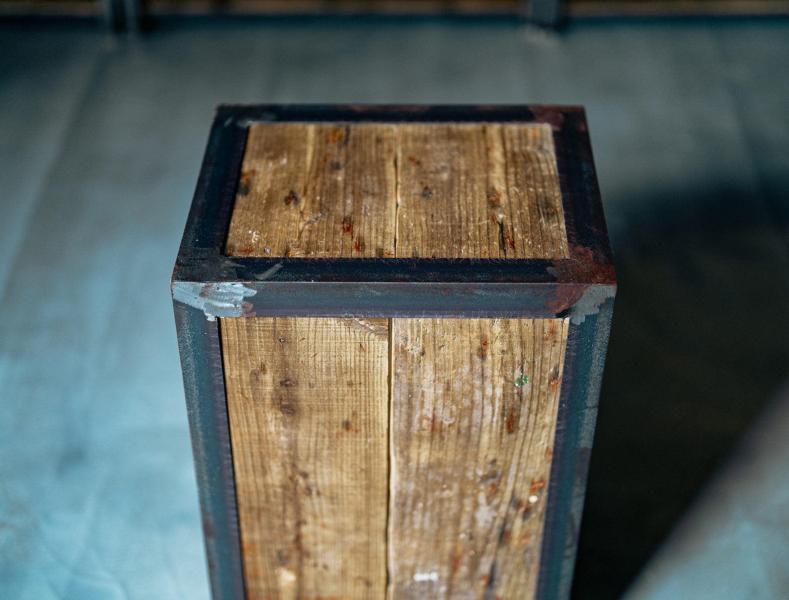 足場板の木材は非常に頑丈で耐久性の高さがあります。足場板の古材をアイアンのフレームの中に組み合わせた プランターボックスです。