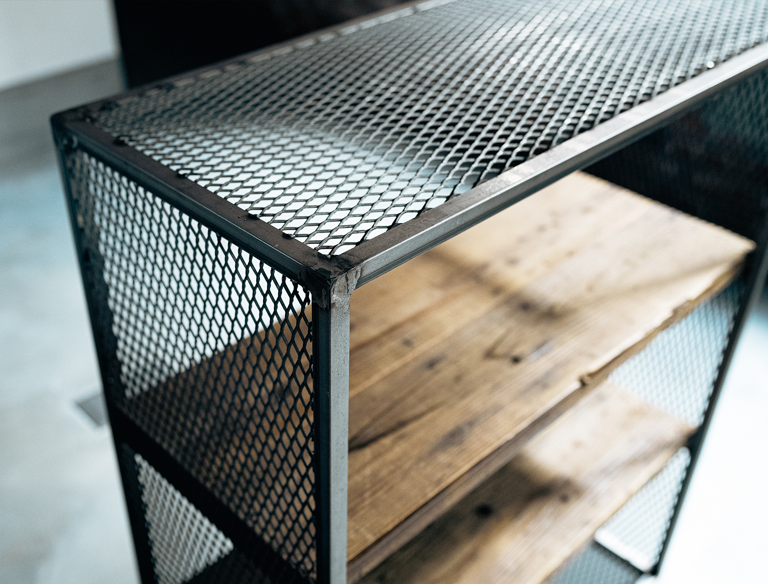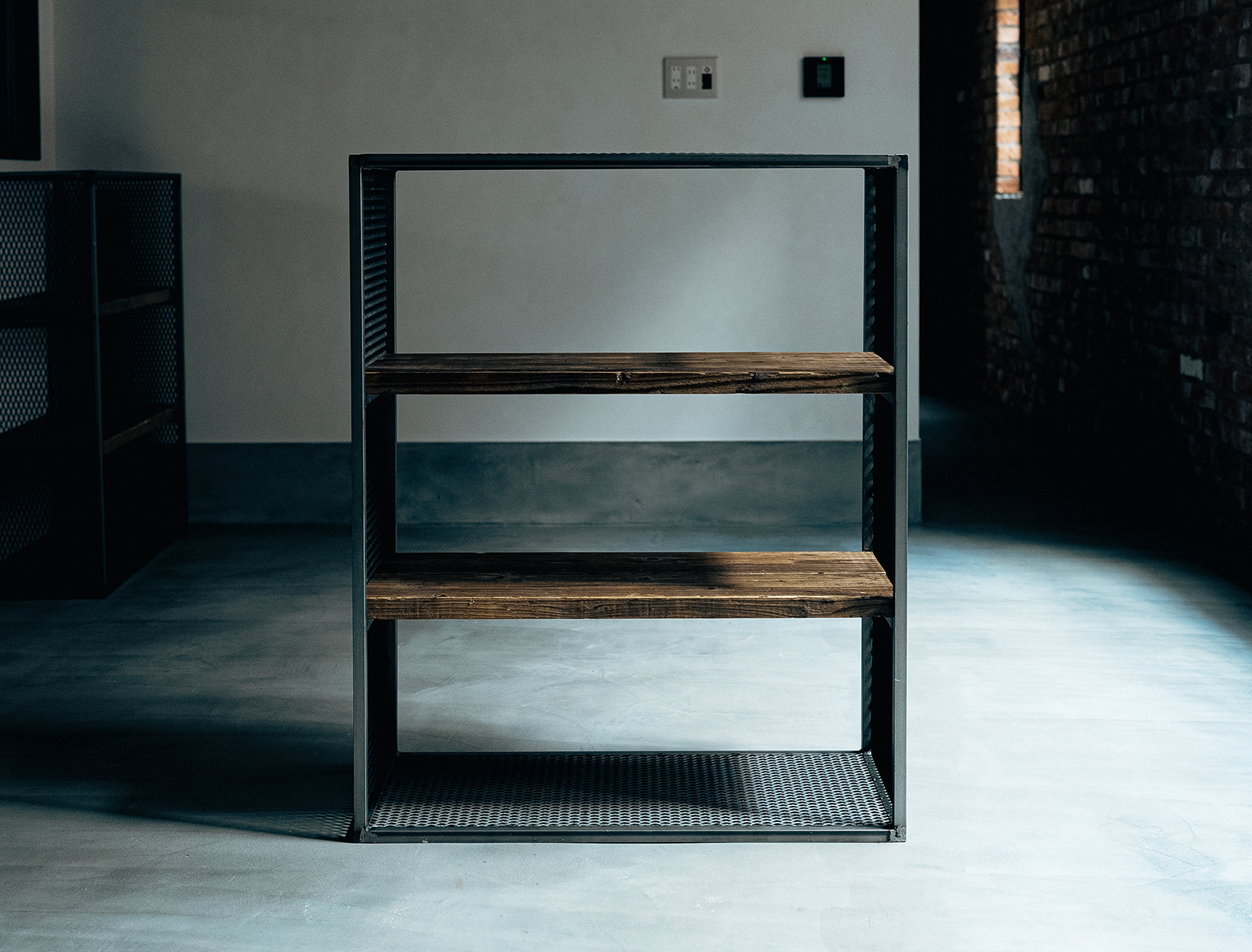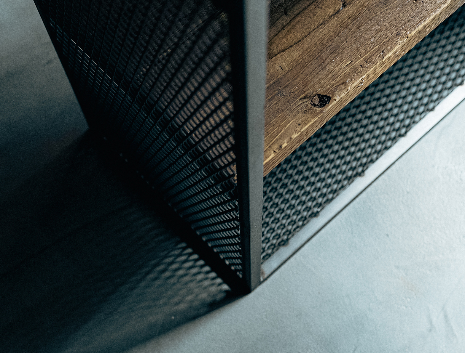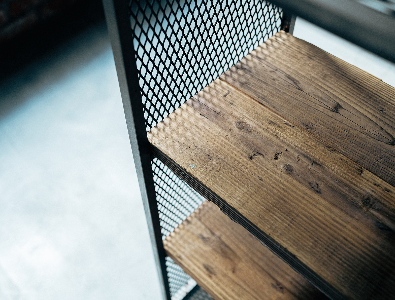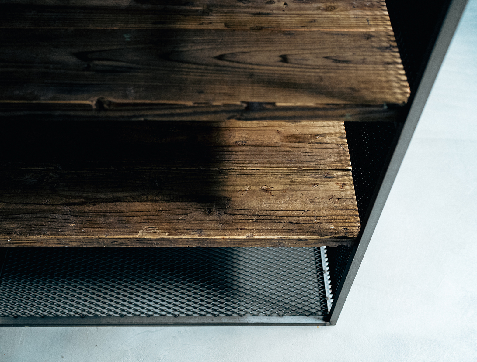 足場板の木材は非常に頑丈で耐久性の高さがあります。足場板の古材をアイアンのフレームの中に組み合わせた プランターボックスです。