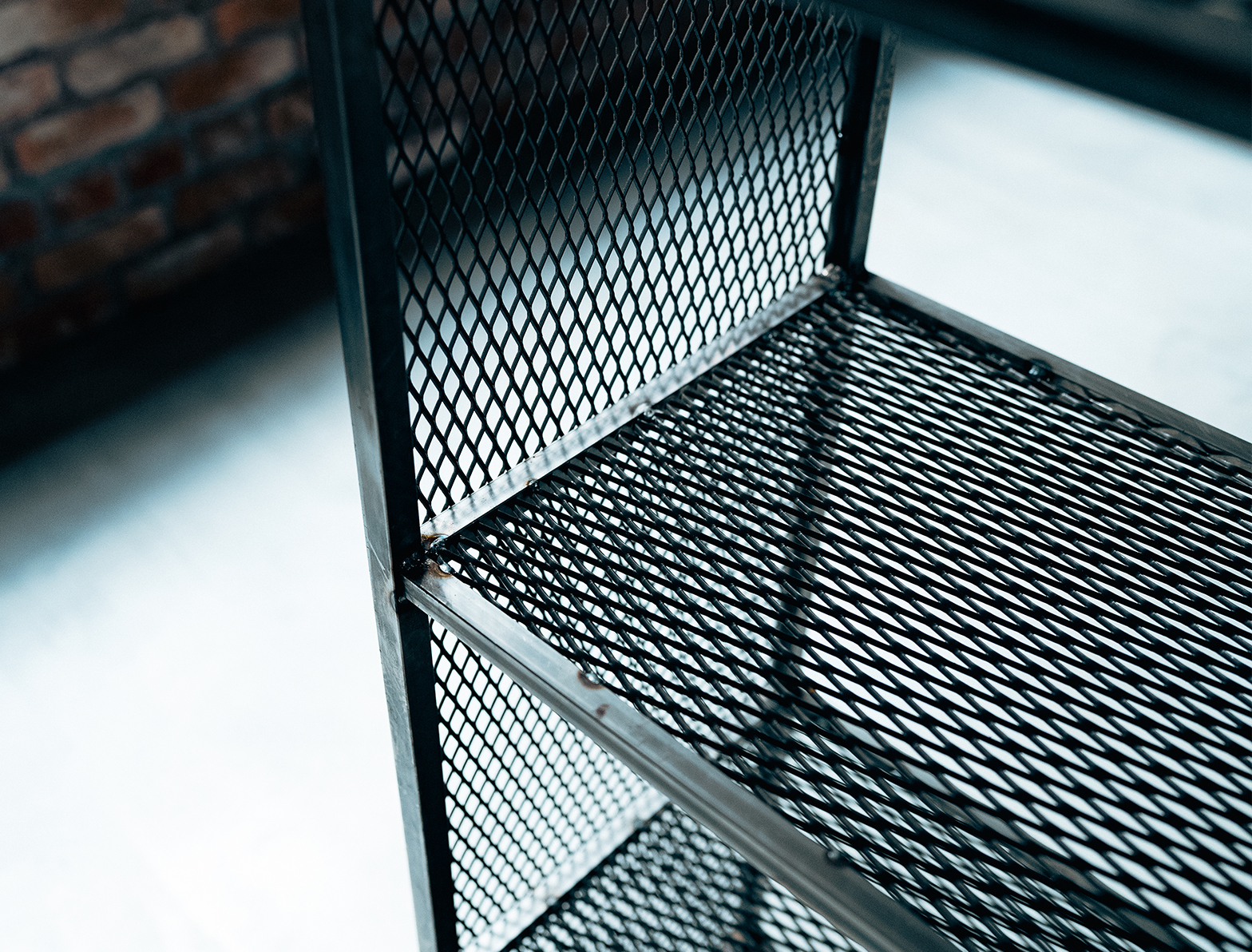 オールアイアンにて制作した商品になります。棚板はアイアンメッシュで制作し無骨でありながら洗練されたデザインが特徴です。素朴でありながらもスタイ リッシュで、現代的な空間にもクラシックな空間にもよ く馴染みます。 本棚やショーケースとして使用していただけます。